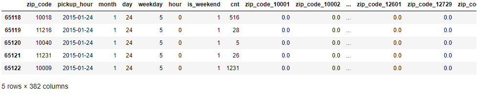 oh_feature_df = pd.concat([base_df, pd.DataFrame(ohe_output, columns='zip_code_'+enc.categories_[0])], axis=1)