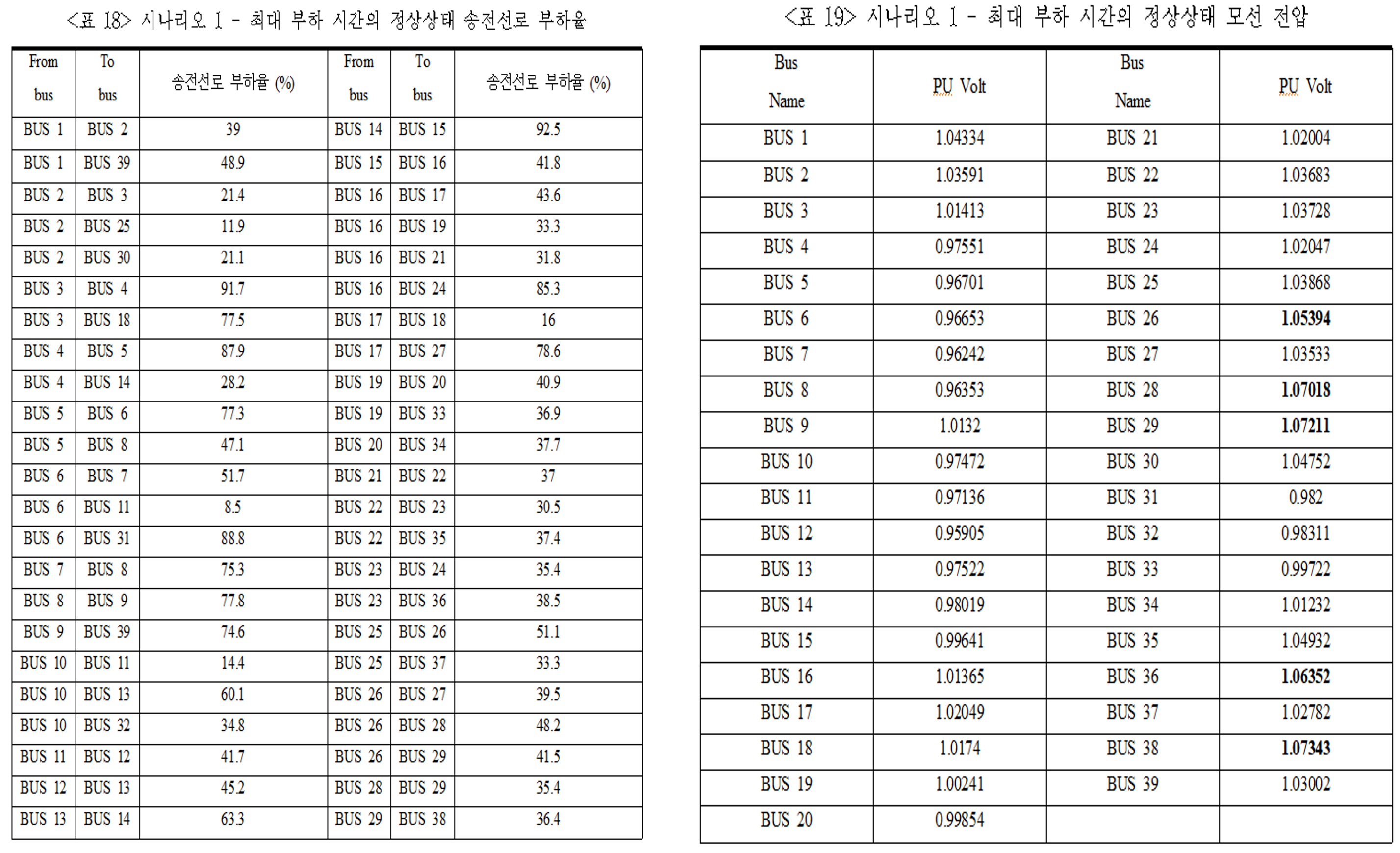 태양광 발전 설비의 투입 비율이 높아짐에 따라 계통에 주는 영향을 파악해보기 위해 두 가지 시나리오를 구성하고 시나리오별 정상상태, N-1상정고장 경우를 살펴보았다.