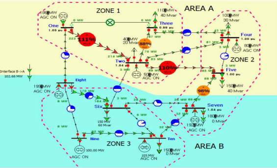 What happend? Transmission lines which were overloaded being back to normal one to three (97.7%), seven to five (69.5%).